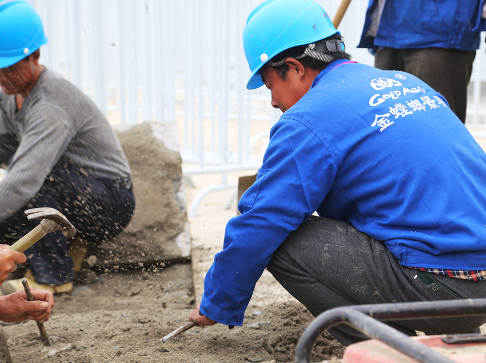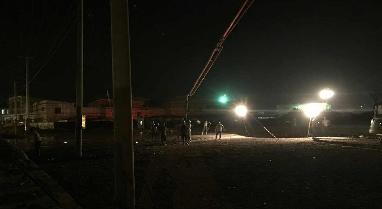 凌晨三点的夜,孤影单只,拉长的身影 天堂视频在线,斑驳晃动,为了能在冬季保质保量铺装,项目部深夜讨论可行性方案,最终确定采用加热沙子和温水拌砂浆,保证能在极寒天气继续施工。