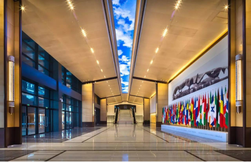 金螳螂在室内装饰风格上融合结合中国传统文化及江南水乡特色,并充分考虑互联网元素,以简约,环保 天堂视频,智慧为设计理念,面对施工现场条件复杂,工期紧张,施工难度大,周边环境复杂等诸多不利因素,金螳螂项目部全体成员迎难而上,发挥攻坚不畏难的精神,顺利实现业主的节点计划,并确保了第三届世界互联网大会的顺利召开,得到了业主和桐乡市政府的高度赞扬。
