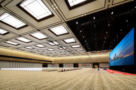 会议中心是会展中心的核心建筑 天堂影院,主会场以“乌镇”为名,可容纳3000人,另由18个会议室,同声传译室,咖啡厅和设备机房组成,可用于举办互联网大会各分论坛,18个会议室的名称也极具乌镇气质:枕水,雨读,慈云,垄行……。
