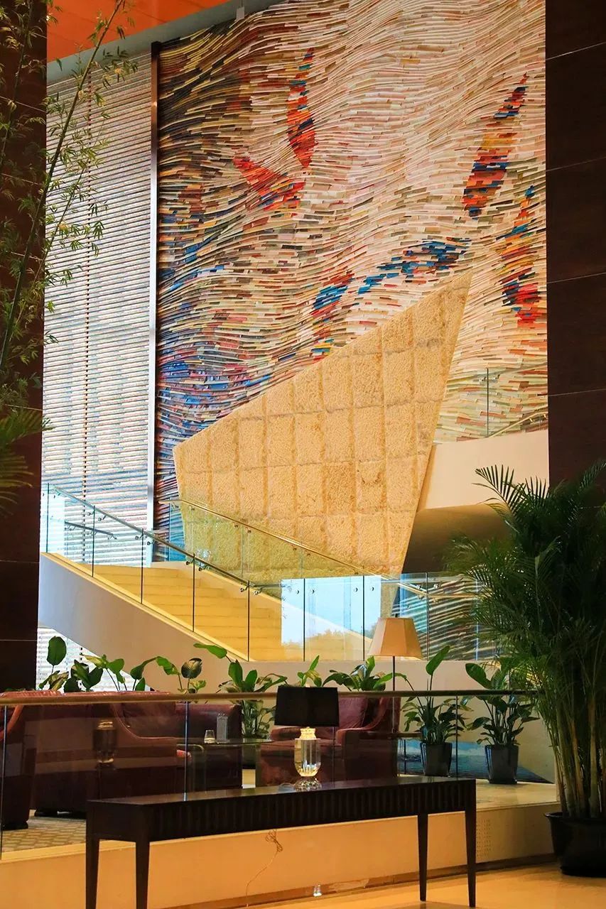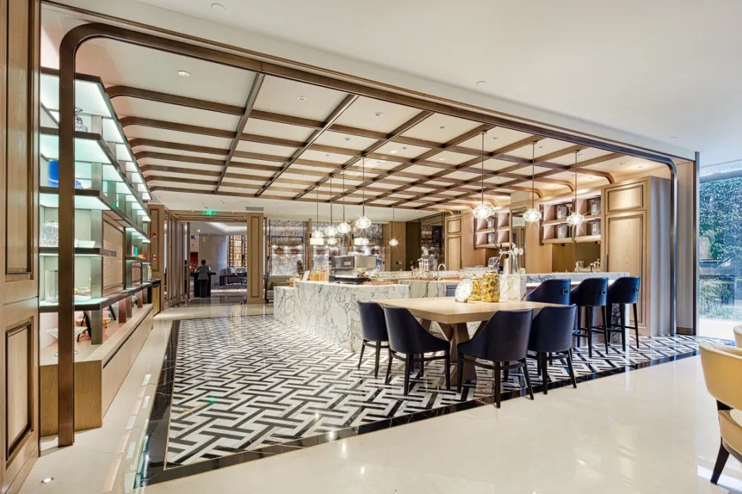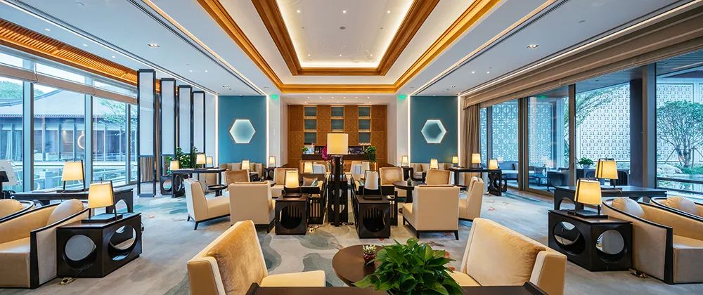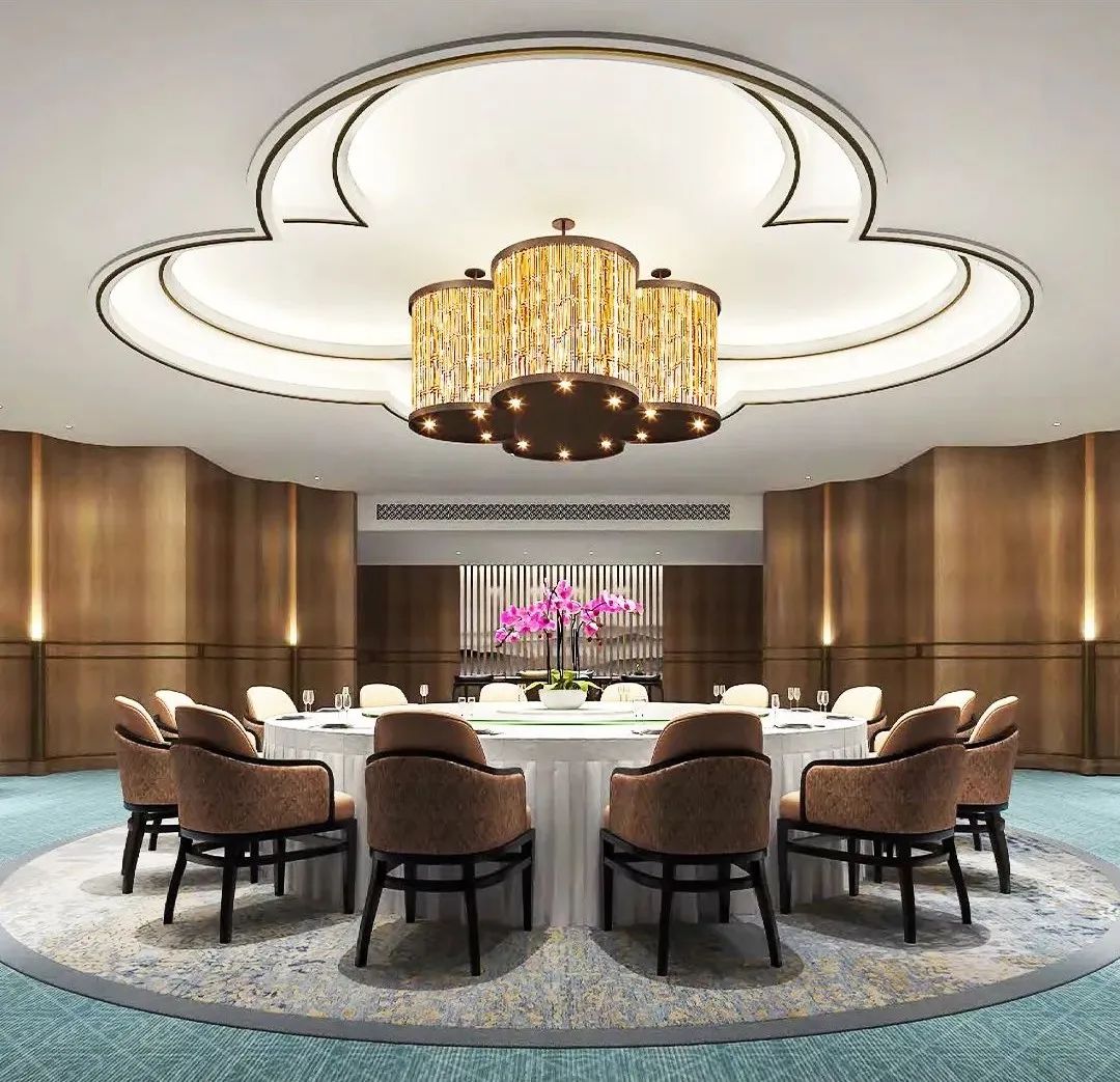 西湖国宾馆面积最大的核心建筑群是杭州G20期间翻新的8号楼,金螳螂负责8号楼大堂、餐厅等公共区域,包括酒店前台、知名餐厅「紫薇厅」、网红大堂吧「红吧」、自助餐厅改造升级。