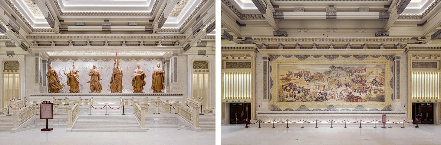 超高超大文化艺术类大空间建筑,必须做大量1:1大样,体现空间比例的合理性,一个造型,通常几次打样,才能确认,过程非常艰苦,金螳螂项目团队,采取了木工板结合彩绘的方式,用最短的时间,创新性把原方案的空间比例感觉呈现出来 天堂视频免费观看。