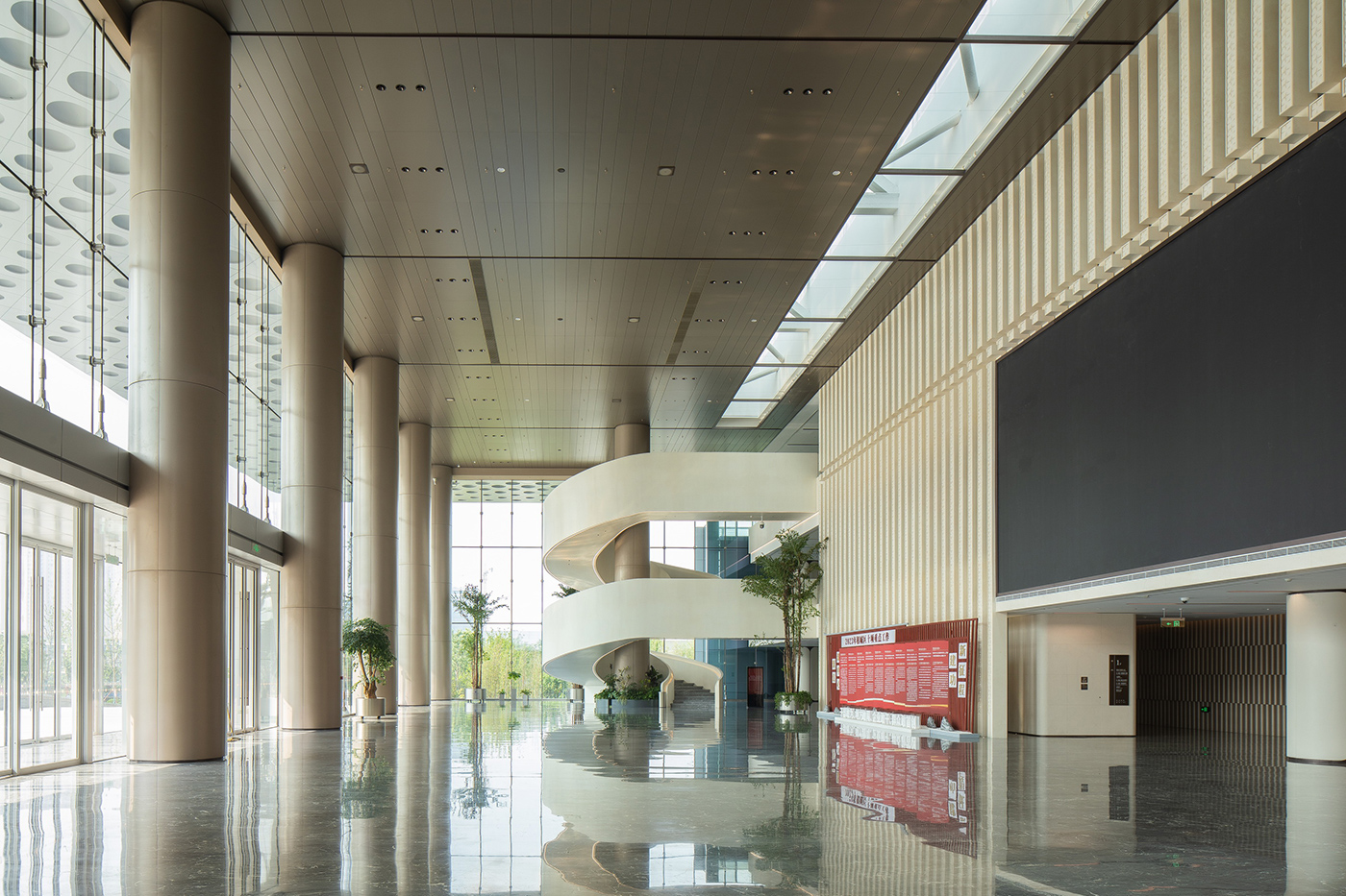 酒店整体建筑俯瞰造型形同汉字“中”,建筑顶部勾勒出高铁形象,完美体现了“以相城梦筑中国梦”的设计理念。