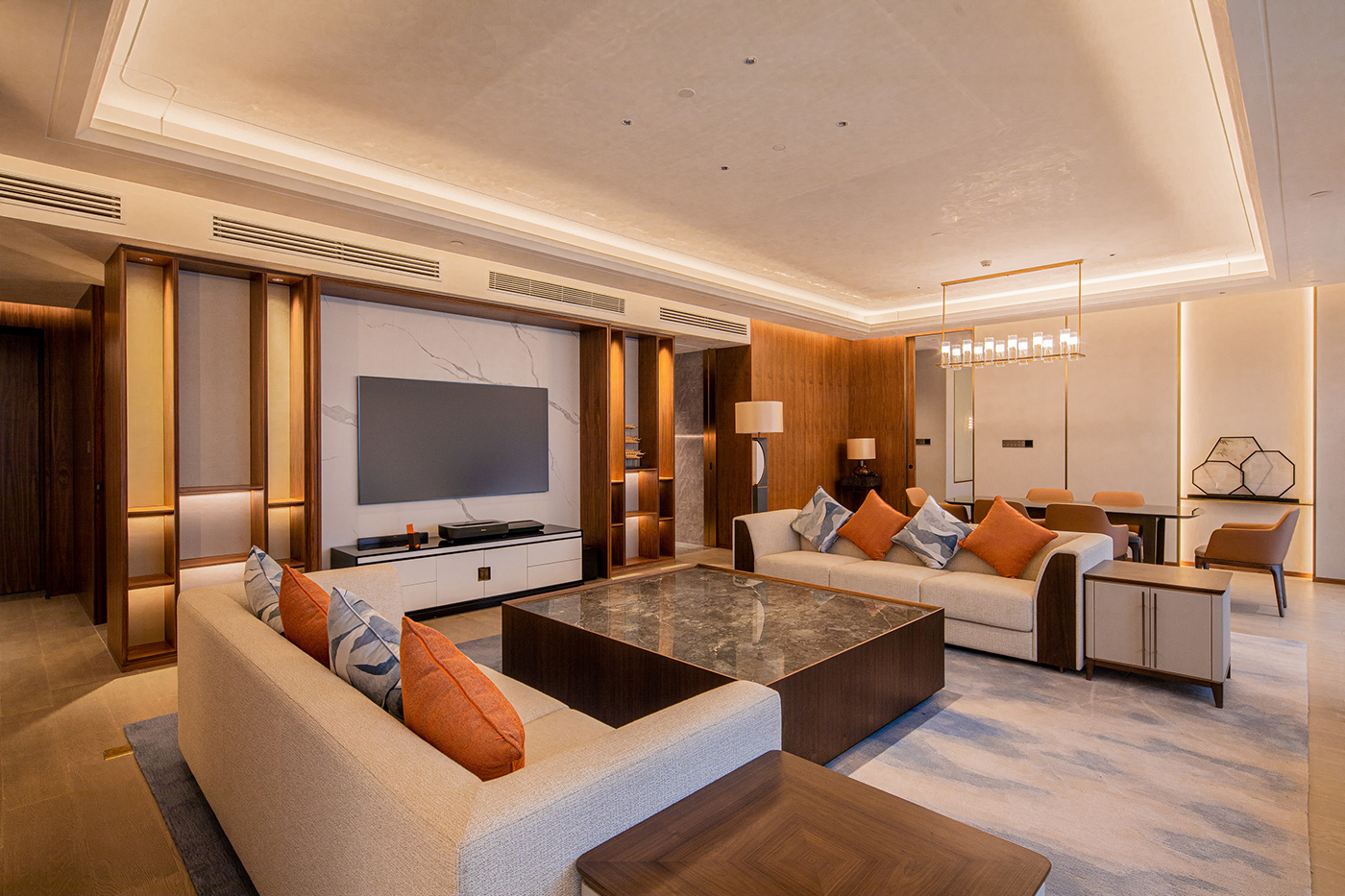 苏州国际会议酒店位于风景秀丽的相城区高铁新城环秀湖边,项目建筑面积30万平方米,其中装修面积20万平方米,客房数量达到1518间,苏州建筑装饰设计研究院负责酒店的方案设计 天堂视频在线,金螳螂负责酒店精装修施工,朗捷通负责酒店的智慧平台,客房控制系统,会议系统,计算机网络系统等智能化服务。