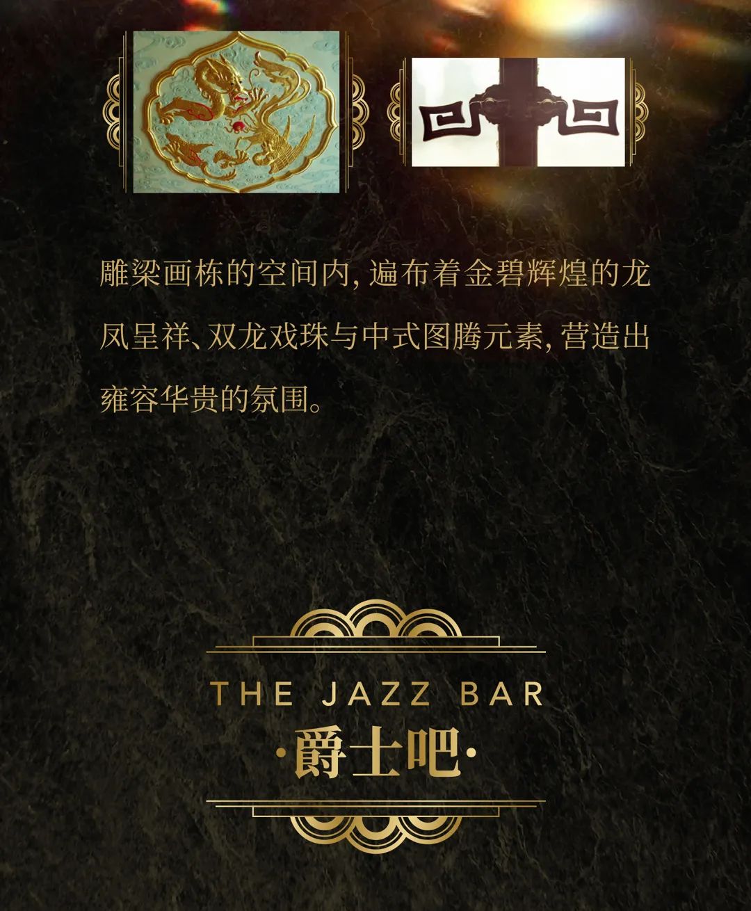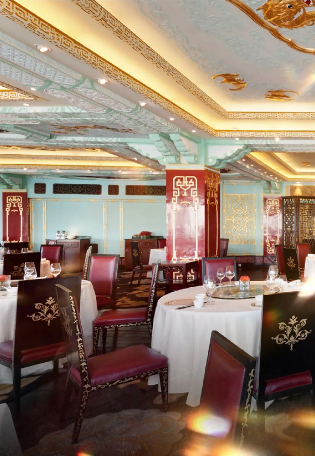 The lavishly ornamented space boasts magnificent traditional Chinese elements,