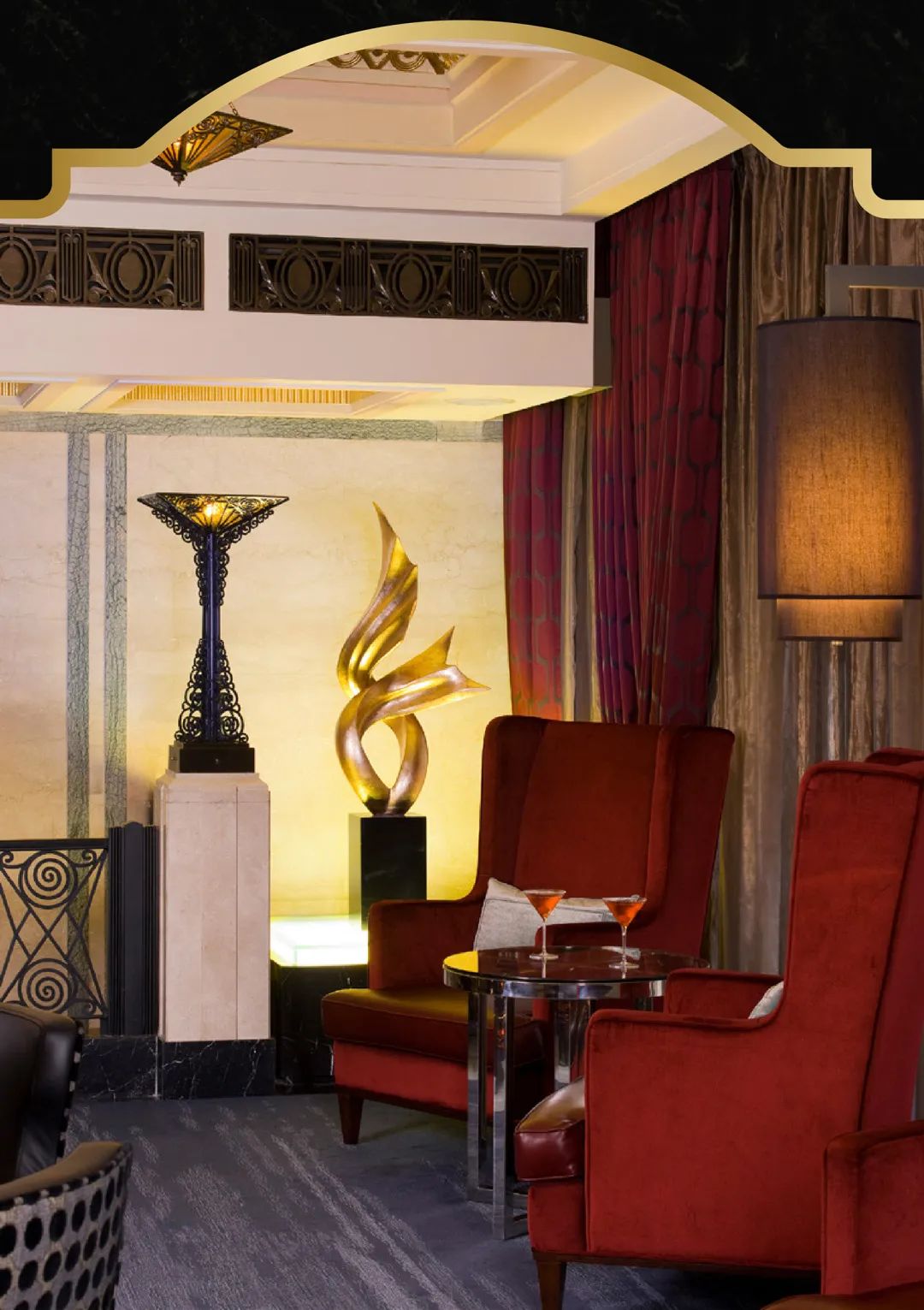 Every element of the interior color scheme at the Peace Hotel has been meticulously selected to accentuate a sense of prestige.