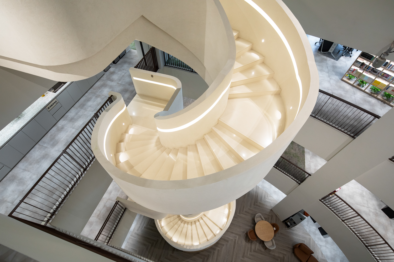 一座造型别具一格的建筑正拔地而起, 仿佛一座绿意葱茏的梦幻“空中花园”
